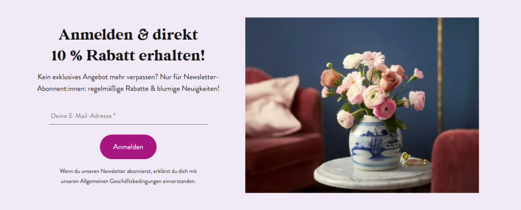 • Abonnement-Dienste: Ein Blumen-Abo, bei dem du regelmäßig frische Blumenlieferungen direkt nach Hause erhältst.
